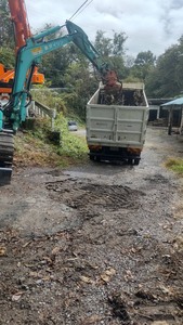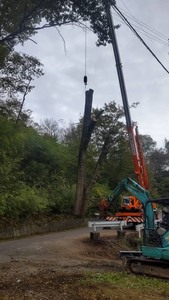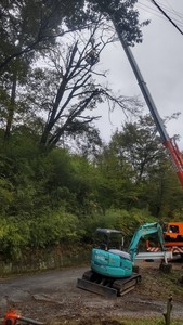 飯田市駄科某所にて、支障木伐採工事の様子です。